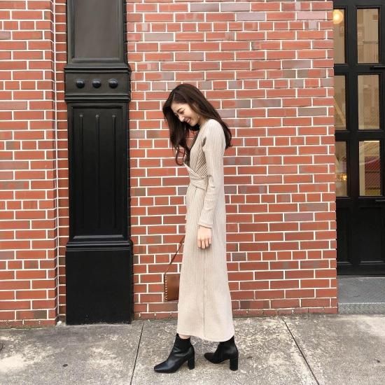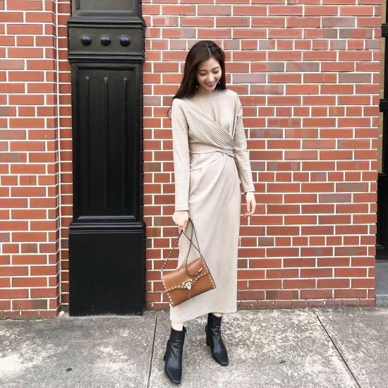 商品名:DESIGN TIGHT DRESS/BEIGE