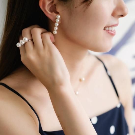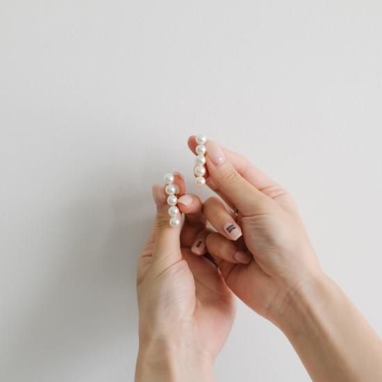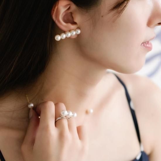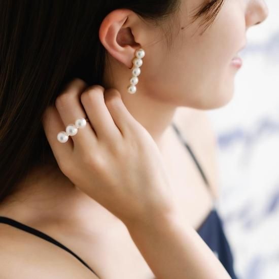 5連に連なったパールががお顔周りを明るく見せてくれる、存在感あるアイテムです。縦に着けるとスラっと伸びたラインが大人っぽさをプラスし、顔周りをすっきり見せてくれます。横に着けるとまた違った印象が楽しめます。