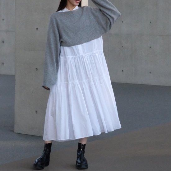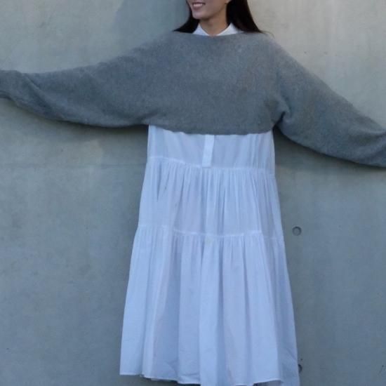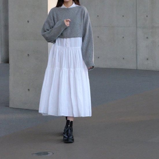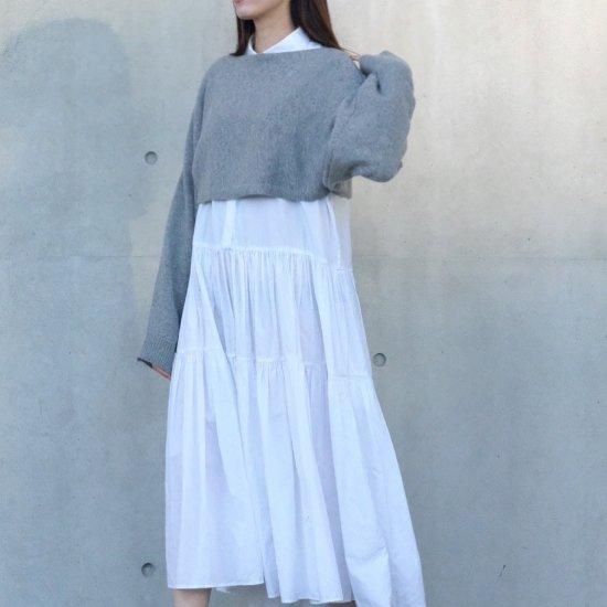 袖にたっぷりボリューム感のあるクロップド丈ニット。
